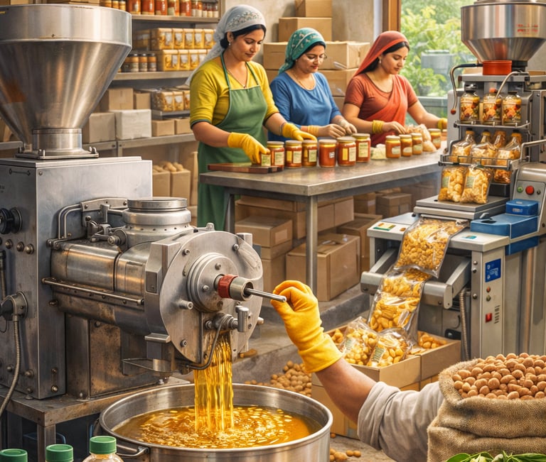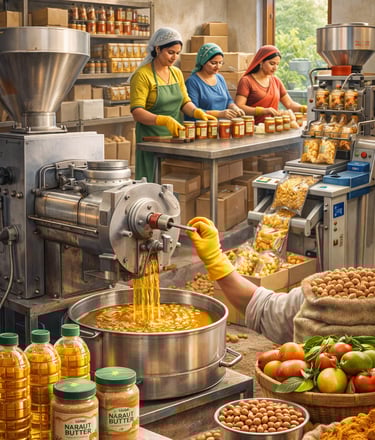 We train individuals, enable them with machinery, procure their produce through assured buy-back, aggregate at scale, and supply institutions with consistent quality.